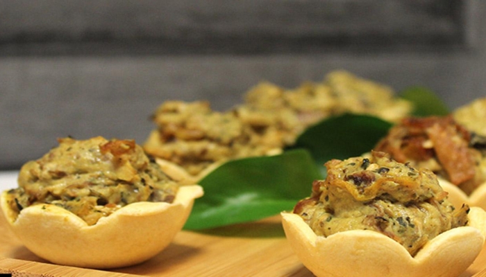 در آخر مواد را در مینی تارت‌های نمکی مخصوص فینگرفود بریزید و روی آن کشک، نعنا و گردو قرار دهید. فینگرفود تارت کشک بادمجان شما آماده است. این فینگرفود را می‌توانید با میرزا قاسمی نیز درست کنید.