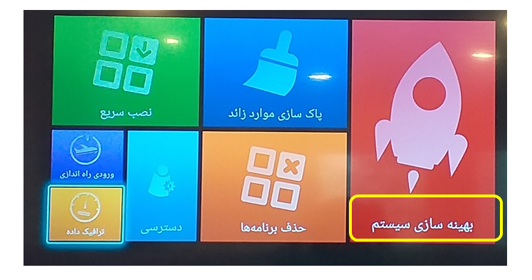 با انتخاب کلید Home و ورود به بخش «مدیریت تلویزیون» گزینهی «بهینهسازی سیستم» را اجرا کنید.