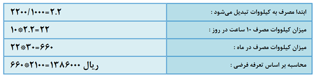 *می‌توانید اعداد خود را جایگزین کرده و میزان مصرف را محاسبه کنید.