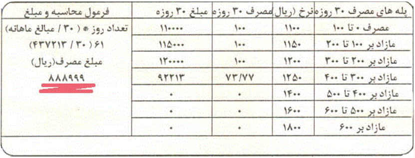 • تعرفه‌ی برق محدوده‌ ی یارانه و محدوده‌ی غیر یارانه