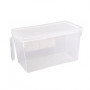 باکس نظم دهنده یخچال، محصولی با طراحی ساده و در عین حال کاملاً کاربردی جهت استفاده از محیط‌های مختلف خانگی و کاری می‌باشد. این باکس از جنس پلاستیک با کیفیت تولید شده و تفاوت آن نسبت به نمونه‌های مشابهش را می‌توان در درجه اول وجود دستگیره در قسمت جلوی محفظه عنوان نمود، این دستگیره به شما کمک می‌کند تا به راحتی آن را درون فضاهای محدود به سمت جلو و یا عقب حرکت دهید. باکس دسته دار یخچال دارای درب آسان بازشو نیز می‌باشد که وظیفه محافظت از محتویات داخل باکس را بر عهده دارد. از این محصول می‌توانید برای استفاده بهتر، بیشتر و البته منظم تر از فضای داخلی یخچال، کابینت و یا حتی کمد جهت نگهداری مواد غذایی و وسایل مختلف استفاده کنید.