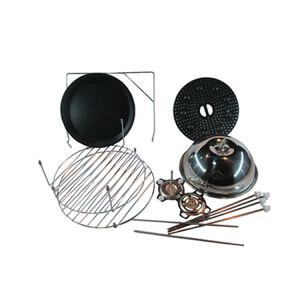 محصول پک لوازم جانبی مایکروویو ال جی شامل قطعات بخار پز، صفحه جوجه گردان، سری جوجه گردان فلزی چهارسیخ، سیخ جوجه گردان و دو عدد پایه فلزی میباشد.