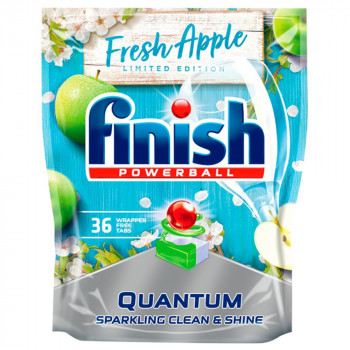 قرص ماشین ظرفشویی فینیش 36 عددی با رایحه سیب از جدیدترین محصولات کمپانی فینیش میباشد و به علت ژله ای بودن ساختار آن و شستشوی ملایم از هرگونه آسیب به ظرف های شما جلوگیری خواهد کرد علاوه بر این، در سخت ترین آب های موجود در کشور نیز پاسخ بسیار خوبی داده است و قدرت پاک کنندگی سخت ترین لکه ها را داراست. روش استفاده : یک عدد از قرص ماشین ظرفشویی فینیش را درون جا قرصی ماشین ظرفشویی خود قرار داده و برنامه مورد نظر خود را انتخاب نمایید (روکش پلاستیکی قرص ماشین ظرف شویی فینیش قابل حل است).